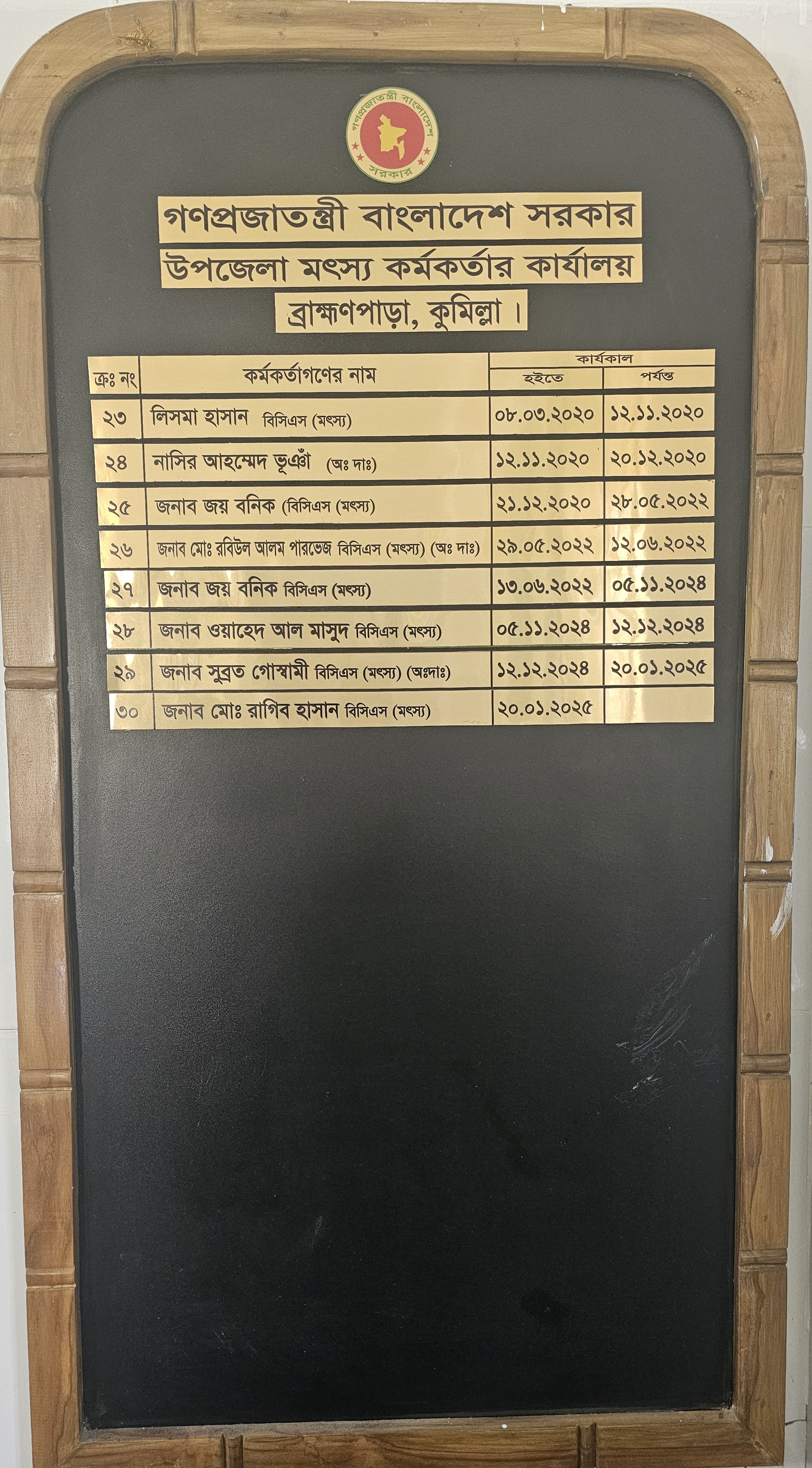 | ২৩ | জনাব লিসমা হাসান | ০৮.০৩.২০২০ | ১২.০১.২০২০ |